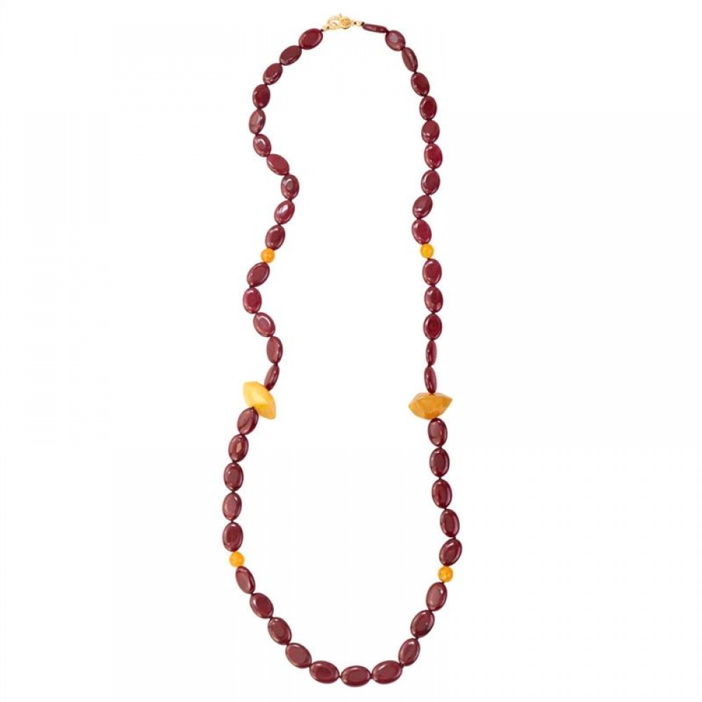 Colar Longo Jade Rubi Com Jade Laranja E Ágata Damasco